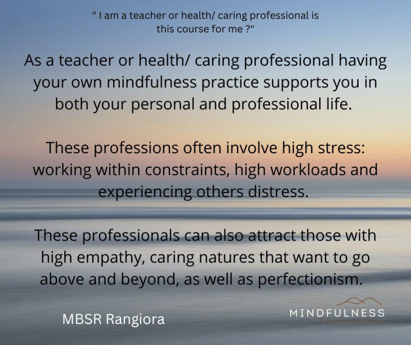 Find out more about mindfulness and self compassion workshops and support for health/ caring/ teaching professionals here