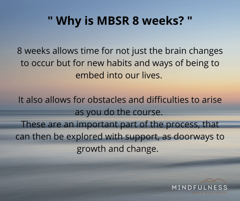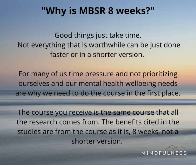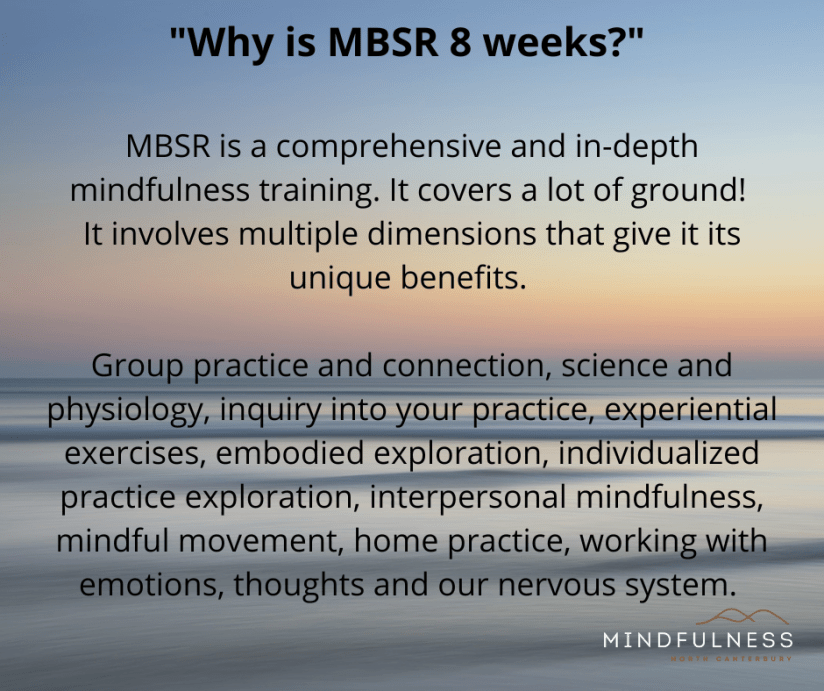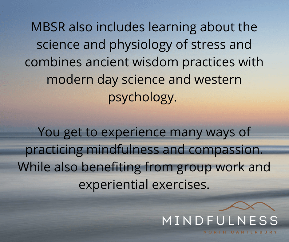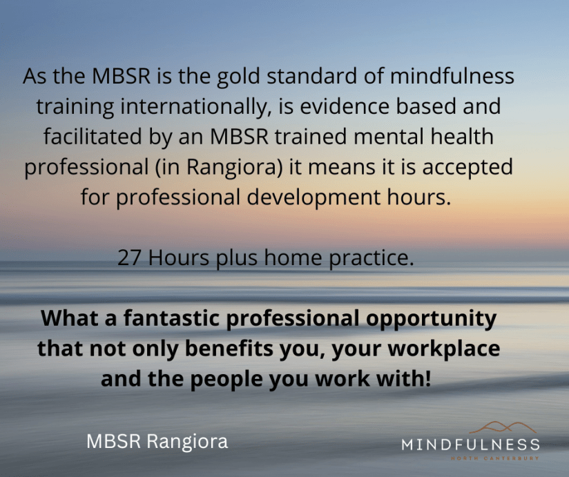 BASED IN RESEARCH MBSR has been extensively researched over the years, this course in Rangiora is the same as the original researched one and is taught by a specialist trained MBSR teacher. These are some of the documented benefits of doing an MBSR course.